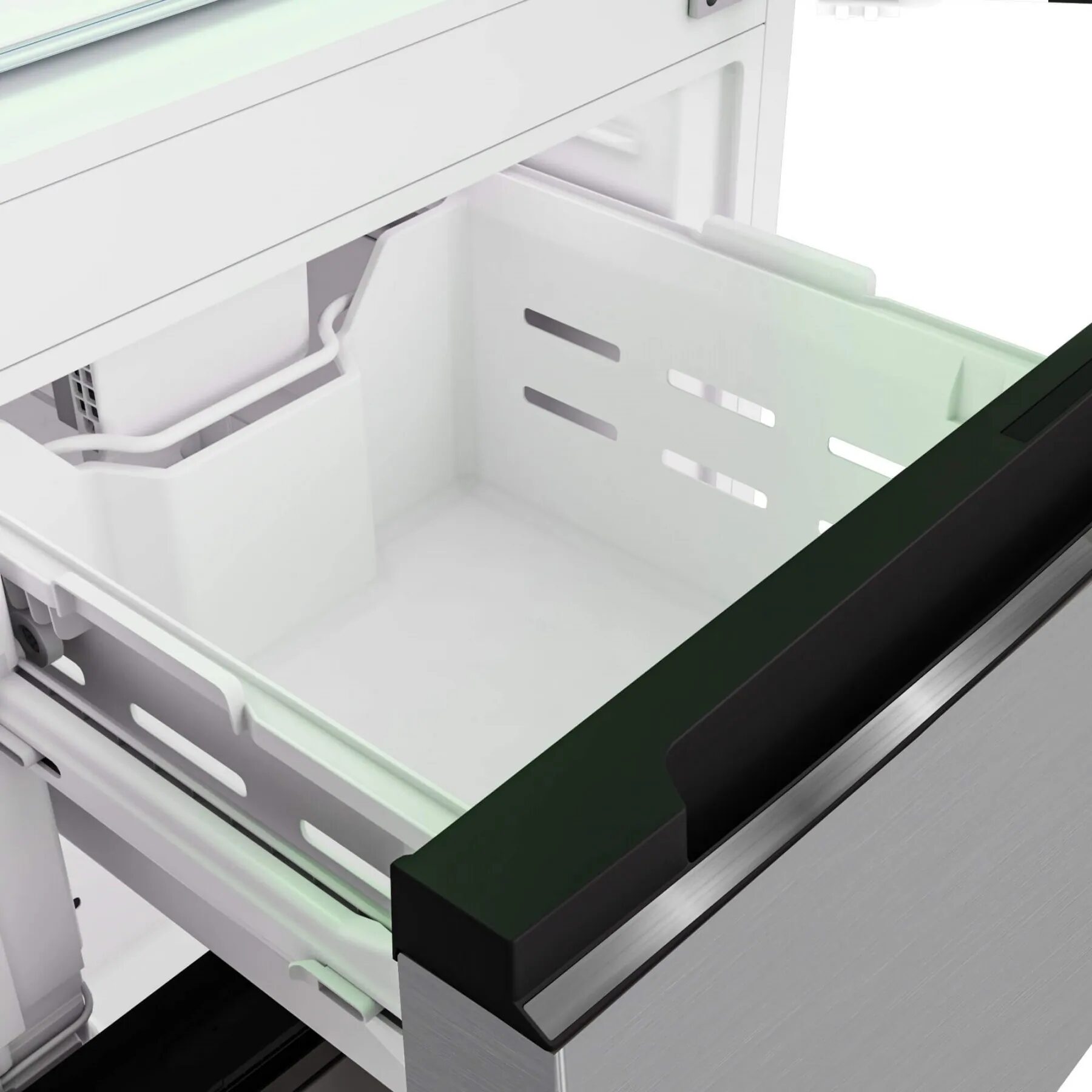 NeoFrost™ Dual Cooling -järjestelmä käyttää kahta erillistä ilmankiertoa jääkaappi- ja pakastinosastoille. Tämä estää jään muodostumisen kokonaan, poistaa sulatustarpeen ja pitää lämpötilan vakaana. Elintarvikkeet eivät kuivu, ja hajut eivät sekoitu osastojen välillä.