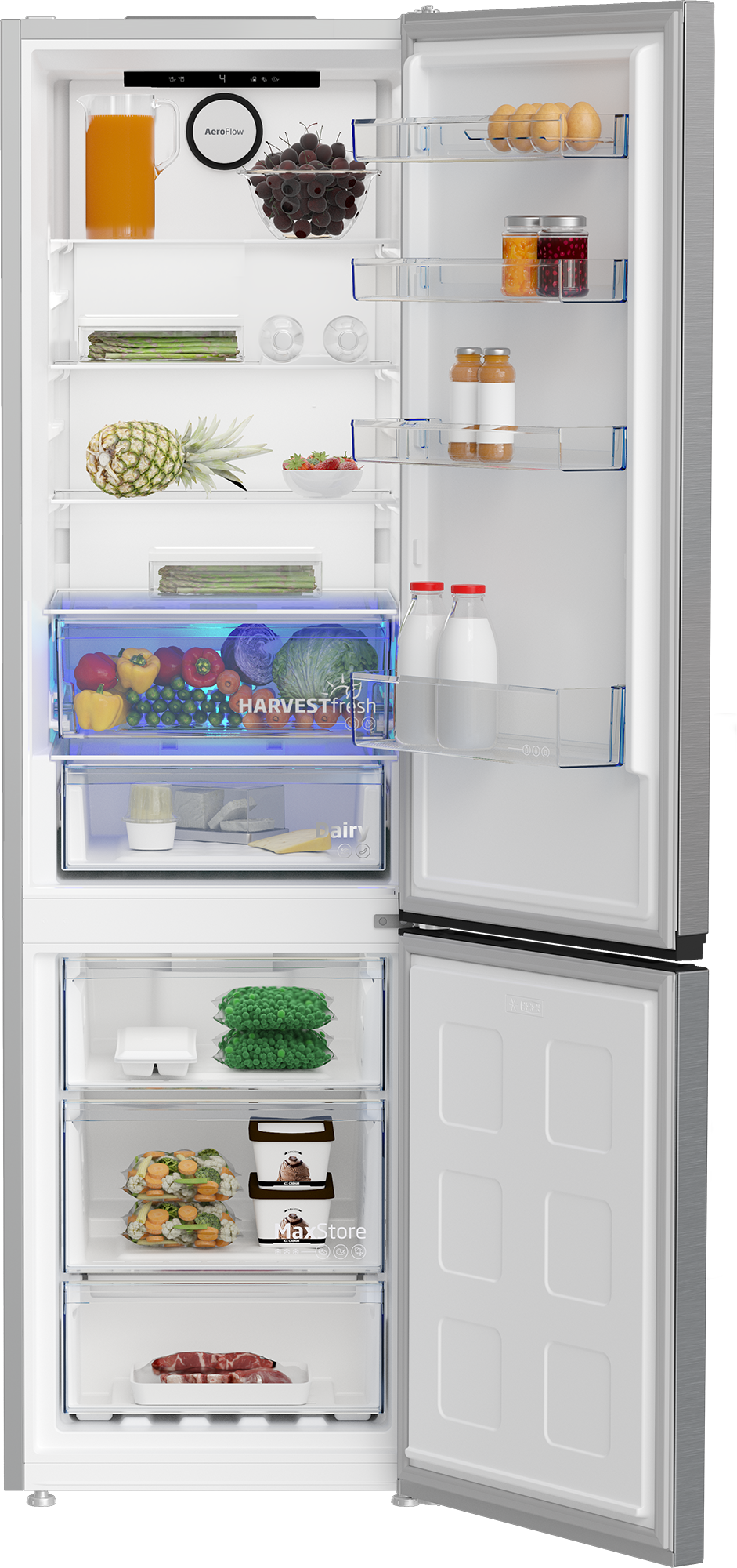 HarvestFresh™-teknologia hyödyntää kolmiväristä valaistusta (sininen, vihreä ja punainen), joka jäljittelee luonnollista vuorokausirytmiä vihanneslaatikossa. Tämä auttaa säilyttämään erityisesti A- ja C-vitamiinit hedelmissä ja vihanneksissa pidempään, pitäen ne raikkaina, maukkaina ja ravinteikkaina.