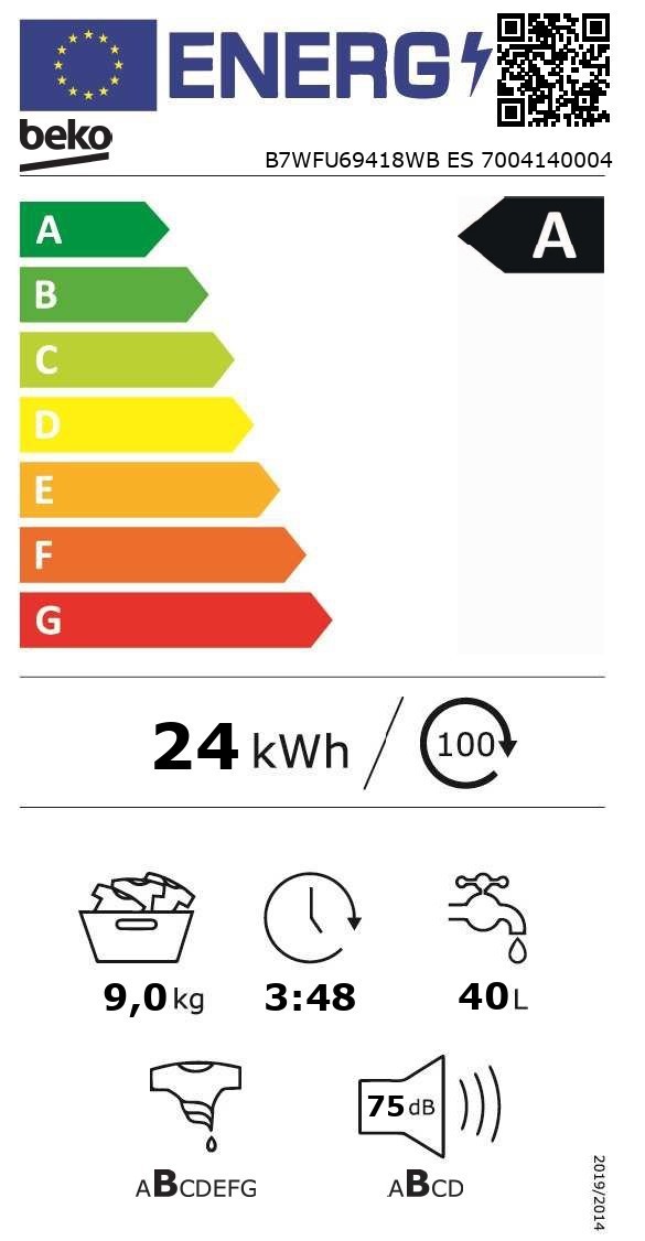 Beko B7WFU69418WBES on uuden sukupolven erittäin energiatehokas pyykinpesukone, joka yhdistää älykkään teknologian, poikkeuksellisen alhaisen energiankulutuksen ja hellävaraisen vaatehuollon. Se on suunniteltu käyttäjälle, joka haluaa parhaan mahdollisen pesutuloksen mahdollisimman pienellä energiankulutuksella.