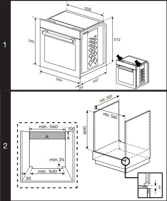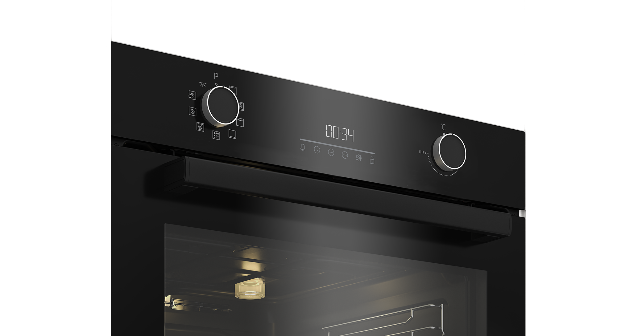 Uunia ohjataan kosketusnäytön ja kiertosäätimien avulla. Valkoinen LED-näyttö näyttää ajan, ajastimen ja lisäasetukset selkeästi, ja näytön kirkkautta voidaan säätää ympäristön mukaan. Ohjauspaneelin lukitustoiminto estää tahattomat painallukset ja helpottaa puhdistusta.