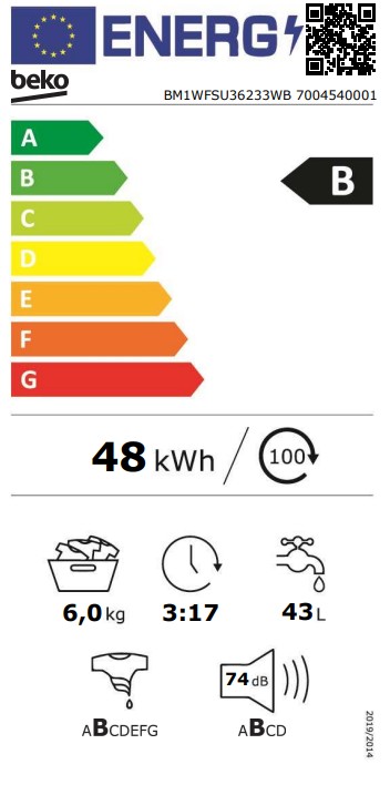 Beko BM1WFSU36233WB on hiljainen ja energiatehokas pyykinpesukone, joka yhdistää vastuullisen RecycledTub®-rakenteen, höyryteknologian ja hellävaraisen rummun tehokkaaseen ja vaivattomaan pyykinhoitoon.