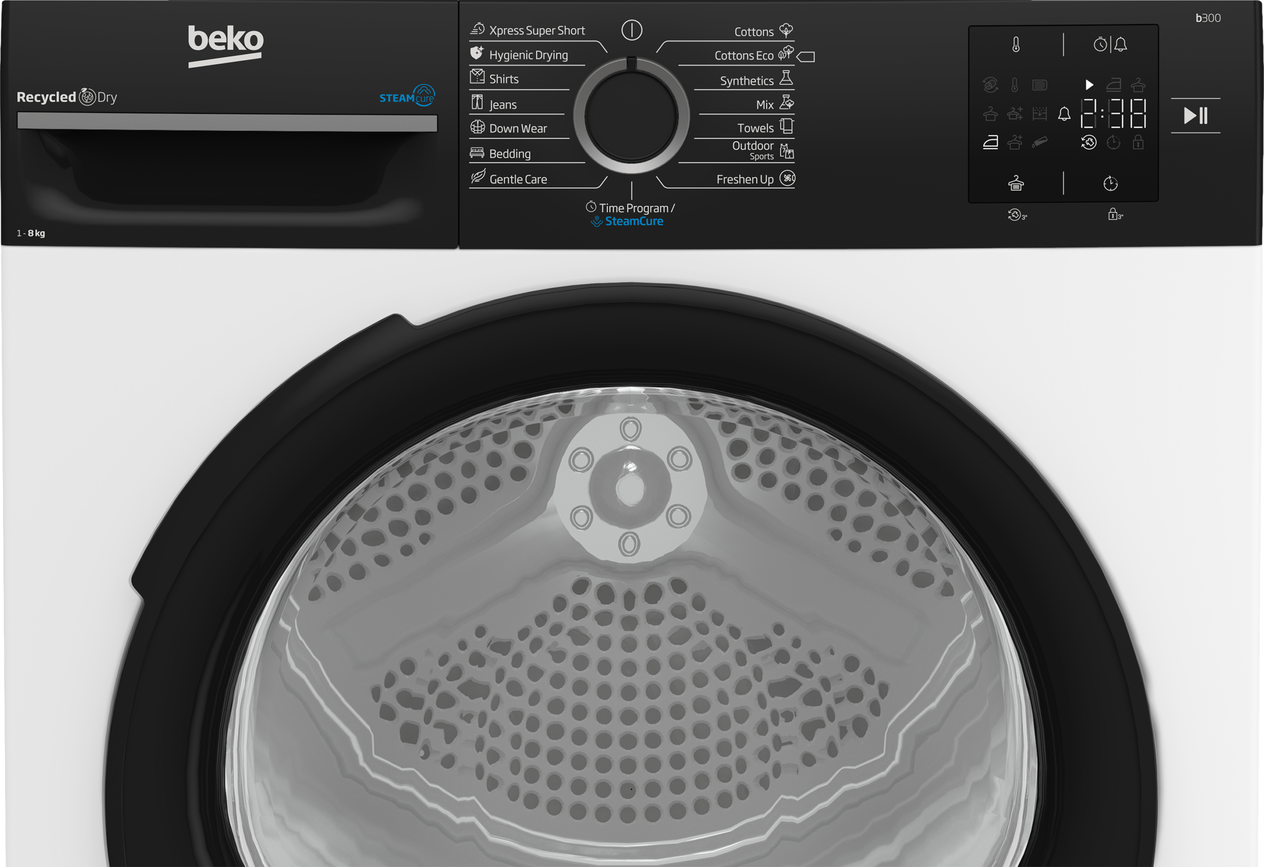 Beko BM3T38239WBB lämpöpumppukuivausrumpu yhdistää energiatehokkaan kuivaustekniikan, älykkään kosteudentunnistuksen ja hygieenisen kuivausohjelman käytännöllisiin ominaisuuksiin. Suora vedenpoisto, rypistymisenesto ja rummun sisävalaistus tekevät siitä luotettavan ja helppokäyttöisen valinnan kotitalouteen.