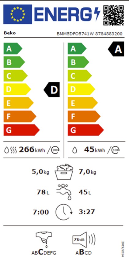 Kuivaava pyykinpesukone mahdollistaa pyykin pesun ja kuivaamisen peräkkäin ilman erillisiä työvaiheita. Tämä tekee Beko BMM5DFO5741W:stä erinomaisen valinnan pienempiin koteihin, kerrostaloasuntoihin ja tiloihin, joissa erillistä kuivausrumpua ei haluta tai voida asentaa.