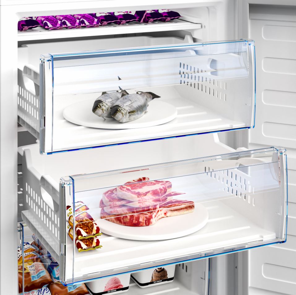 Fast Freeze -toiminto laskee lämpötilan nopeasti, mikä auttaa säilyttämään elintarvikkeiden laadun ja ravintoaineet tuoreita tuotteita pakastettaessa. Toiminnon päätyttyä lämpötila palautuu automaattisesti aiempaan asetukseen.