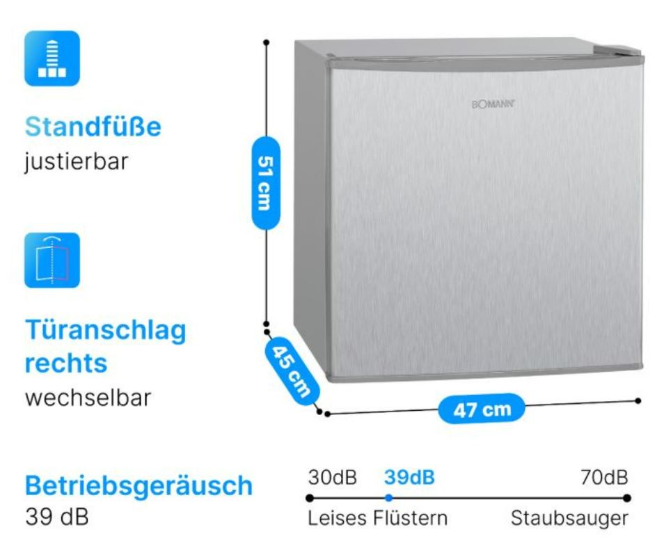Bomann GB341S on pieni ja tilatehokas pakastin, joka on suunniteltu tilanteisiin, joissa tarvitaan luotettavaa pakastustilaa mahdollisimman kompaktissa koossa. Se soveltuu erinomaisesti esimerkiksi toimistoon, opiskelija-asuntoon, mökille tai lisäpakastimeksi kodin rinnalle.