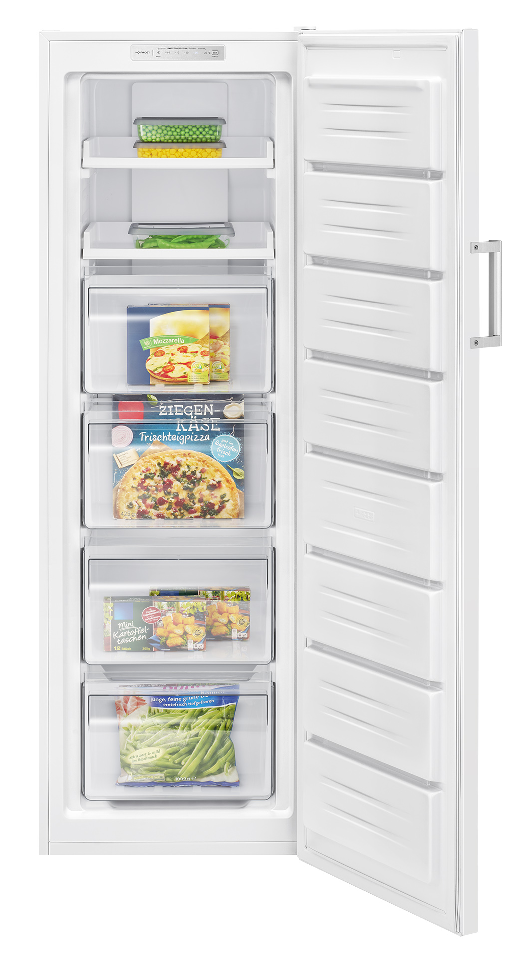 NoFrost-teknologia estää jään muodostumisen ja ylläpitää optimaalista kosteustasoa. Pakastinta ei tarvitse sulattaa, mikä säästää aikaa ja vaivaa.