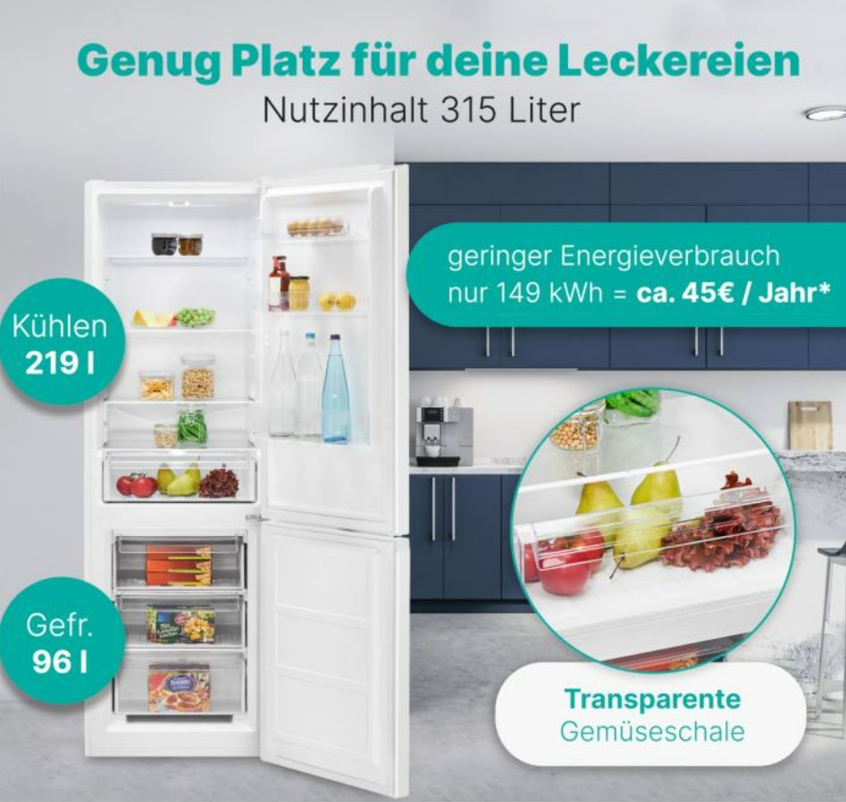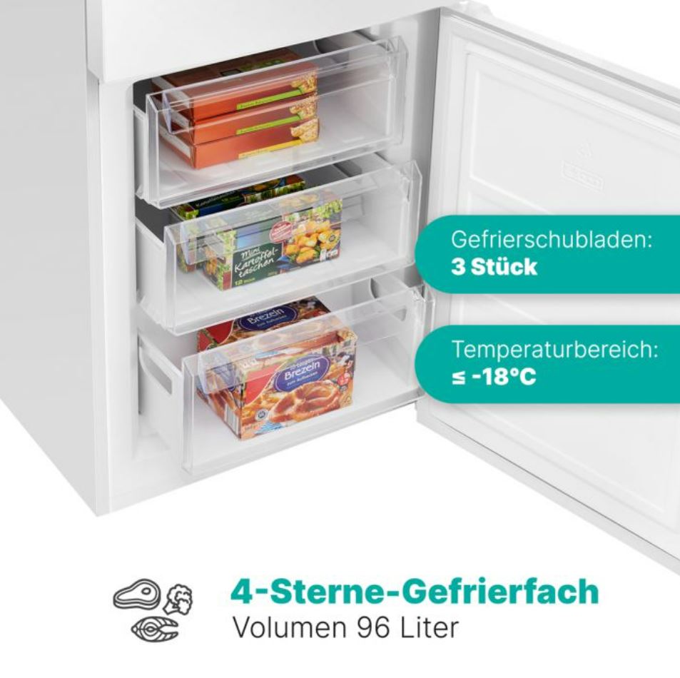 Bomann KG7357W on tilava ja käytännöllinen jääkaappipakastin, joka tarjoaa runsaasti säilytystilaa ja selkeästi jäsennellyn sisärakenteen päivittäiseen käyttöön. Yhteensä 315 litran käyttötilavuus tekee laitteesta erinomaisen valinnan perheille ja kotitalouksille, joissa tarvitaan paljon kylmä- ja pakastustilaa.