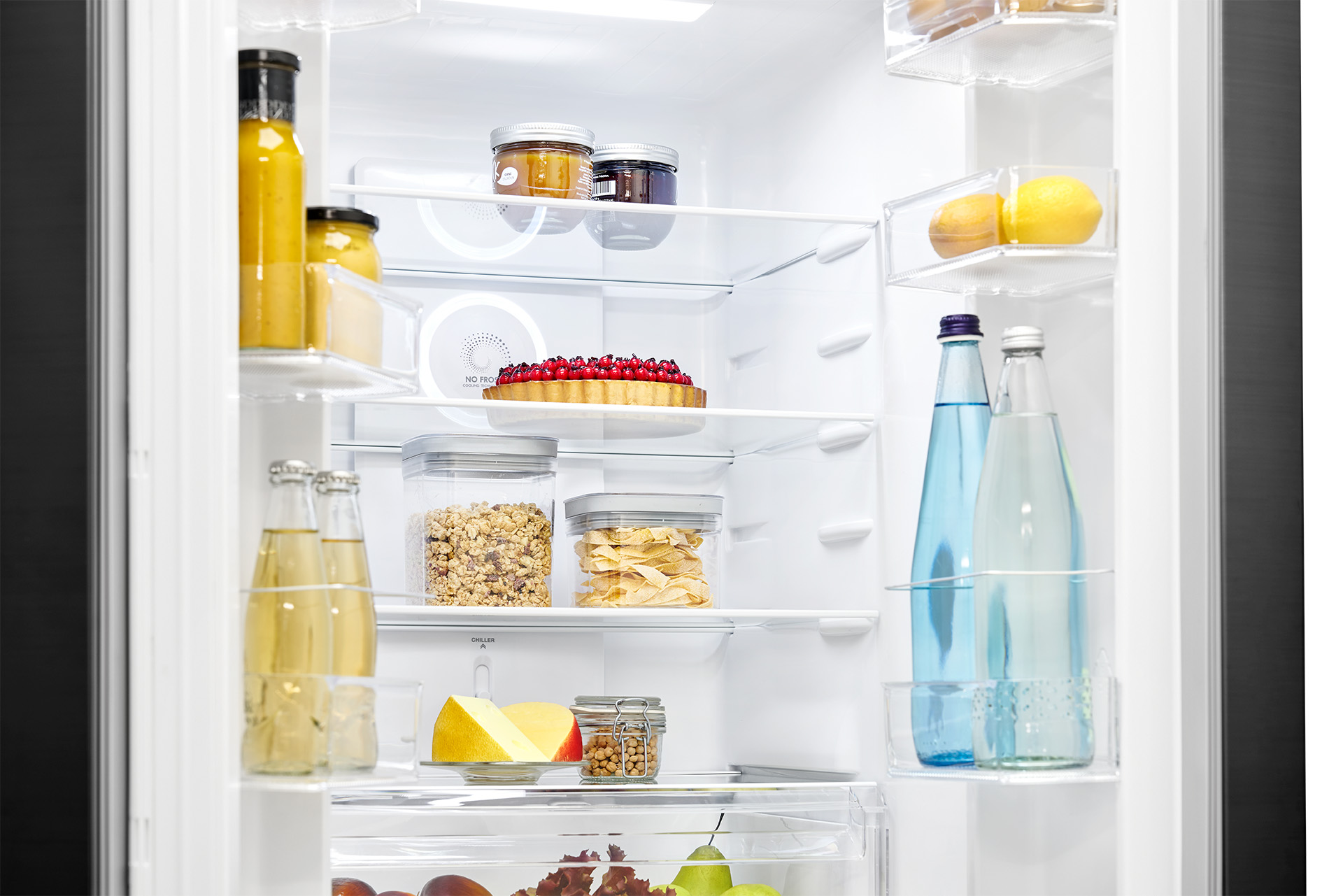 MultiAirflow-järjestelmä jakaa kylmän ilman tasaisesti koko kaappiin. Lämpötilavaihtelut vähenevät ja jäähdytysaika lyhenee, mikä auttaa säilyttämään ruoan laadun ja tuoreuden pidempään.