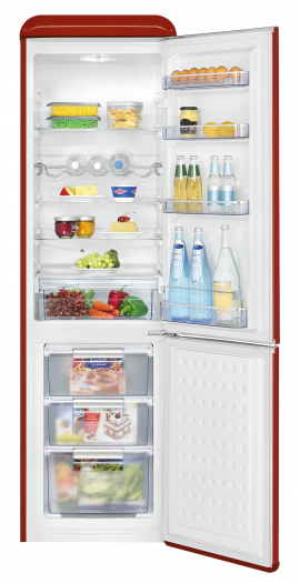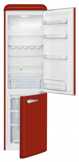 Bomann KGR7328R on käytännöllinen ja hyvin varusteltu jääkaappipakastin, joka tarjoaa selkeästi jäsennellyt säilytystilat sekä tuoreille että pakastetuille elintarvikkeille. Kromiyksityiskohdat viimeistelevät sisätilojen ulkonäön ja tuovat laitteeseen laadukkaan ilmeen.