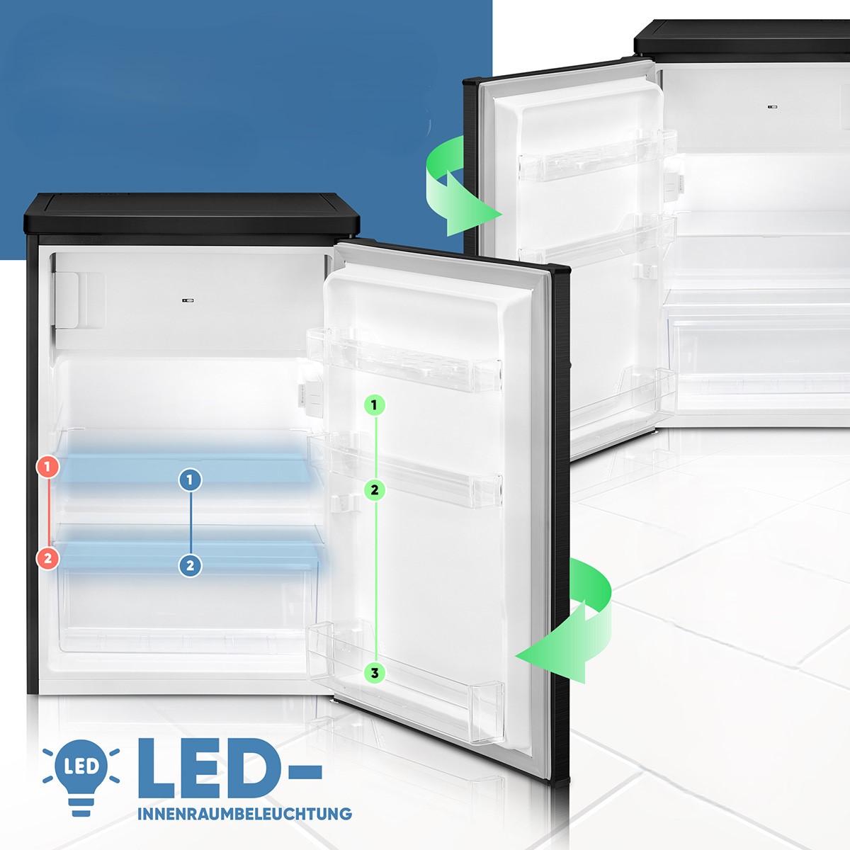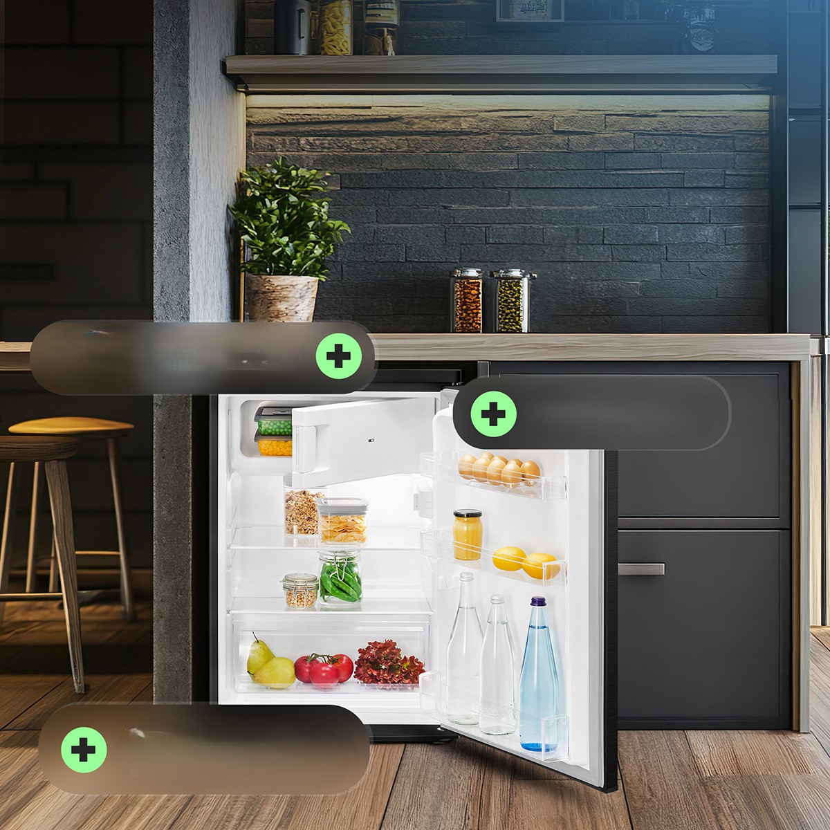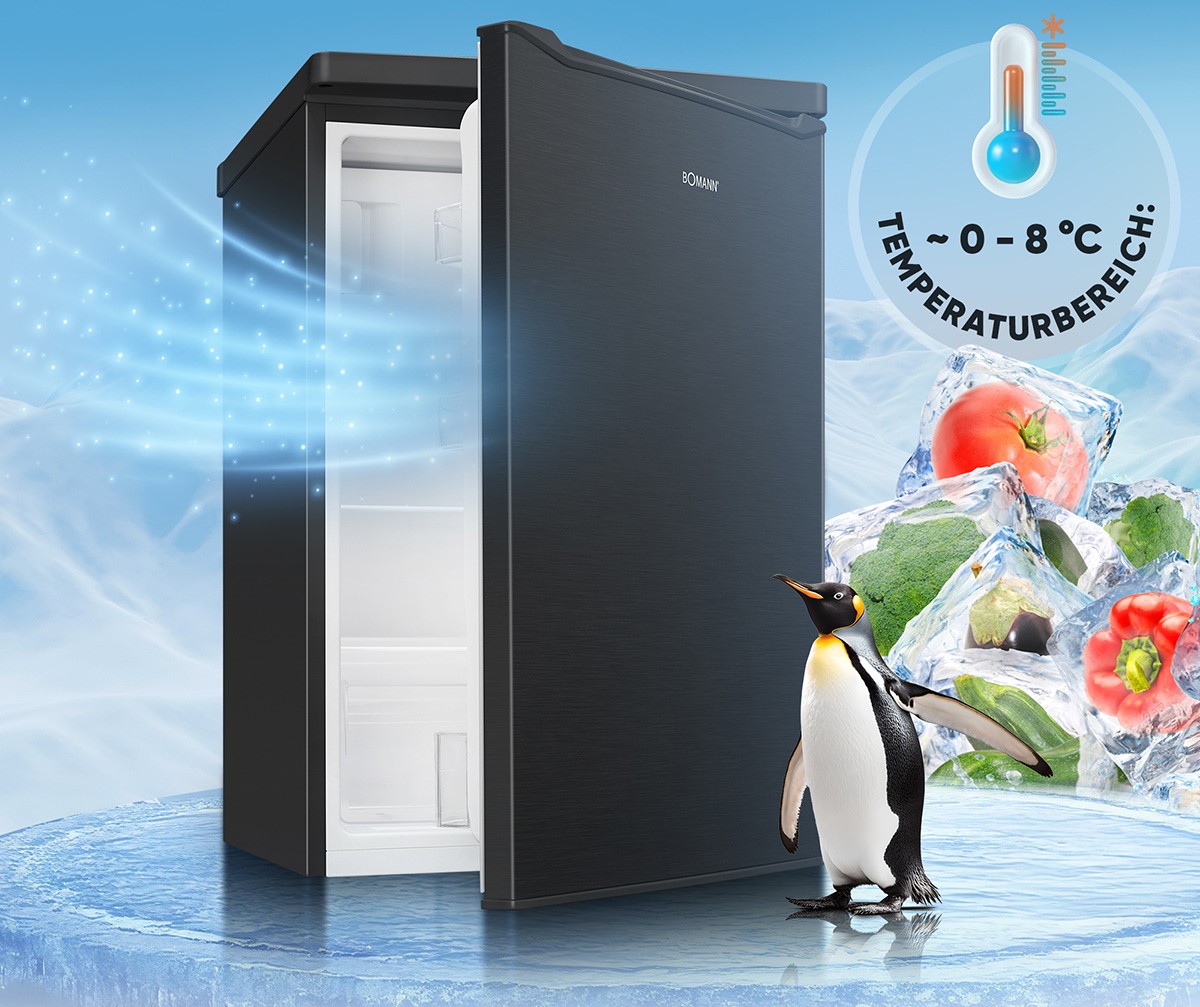 Bomann KS7251SIX on alakaappiin sijoitettava jääkaappi pakastelokerolla, joka sopii erinomaisesti toimistoon, mökille tai opiskelija-asuntoon. Musta ruostumattoman teräksen viimeistely antaa laitteelle modernin ja viimeistellyn ilmeen, joka istuu hyvin nykyaikaisiin keittiöihin.