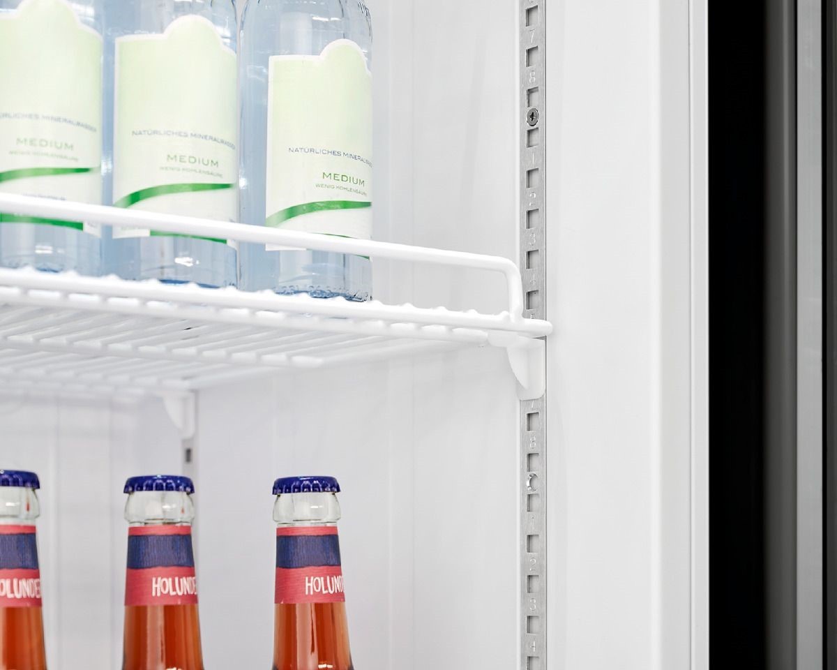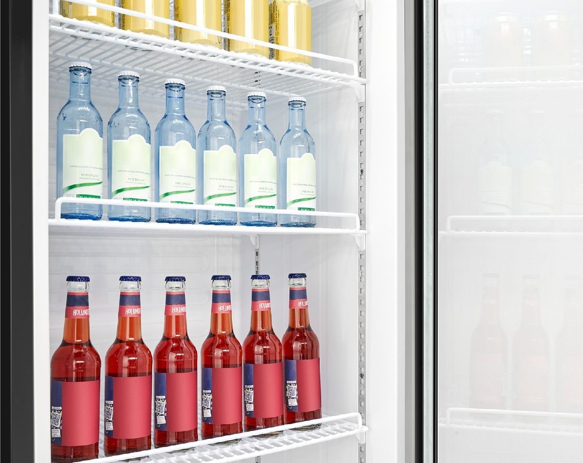 Kaksinkertainen lasiovi parantaa eristystä ja tuo tuotteet selkeästi esiin ilman oven avaamista. Ovi on oikeakätinen, mikä sopii useimpiin vakiotiloihin.