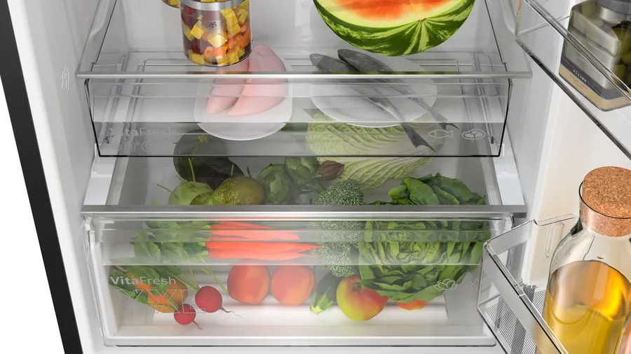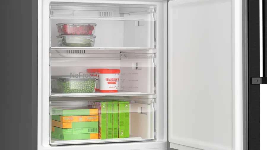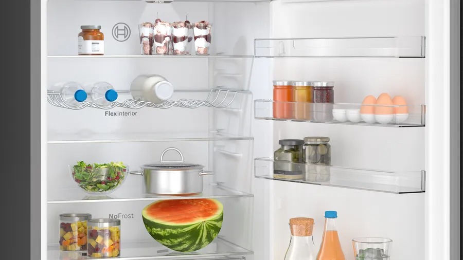 Bosch KGN49VXCT jääkaappipakastin yhdistää suuren säilytystilan, NoFrost-teknologian, VitaFresh XXL -tuoreusratkaisut ja erittäin hiljaisen käynnin. Se on erinomainen valinta, kun haluat tilavan, tyylikkään ja energiatehokkaan jääkaappipakastimen vaativaan kotikäyttöön.