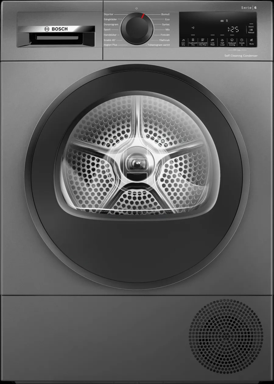 Bosch WQG245DXSN on Serie 6 -sarjan lämpöpumppukuivausrumpu, joka yhdistää tehokkaan ja hellävaraisen kuivaustekniikan, hiljaisen käynnin sekä helppokäyttöisen hallinnan. 9 kg kuivauskapasiteetti ja älykkäät automaattitoiminnot tekevät siitä erinomaisen valinnan perheille ja aktiiviseen arkikäyttöön.