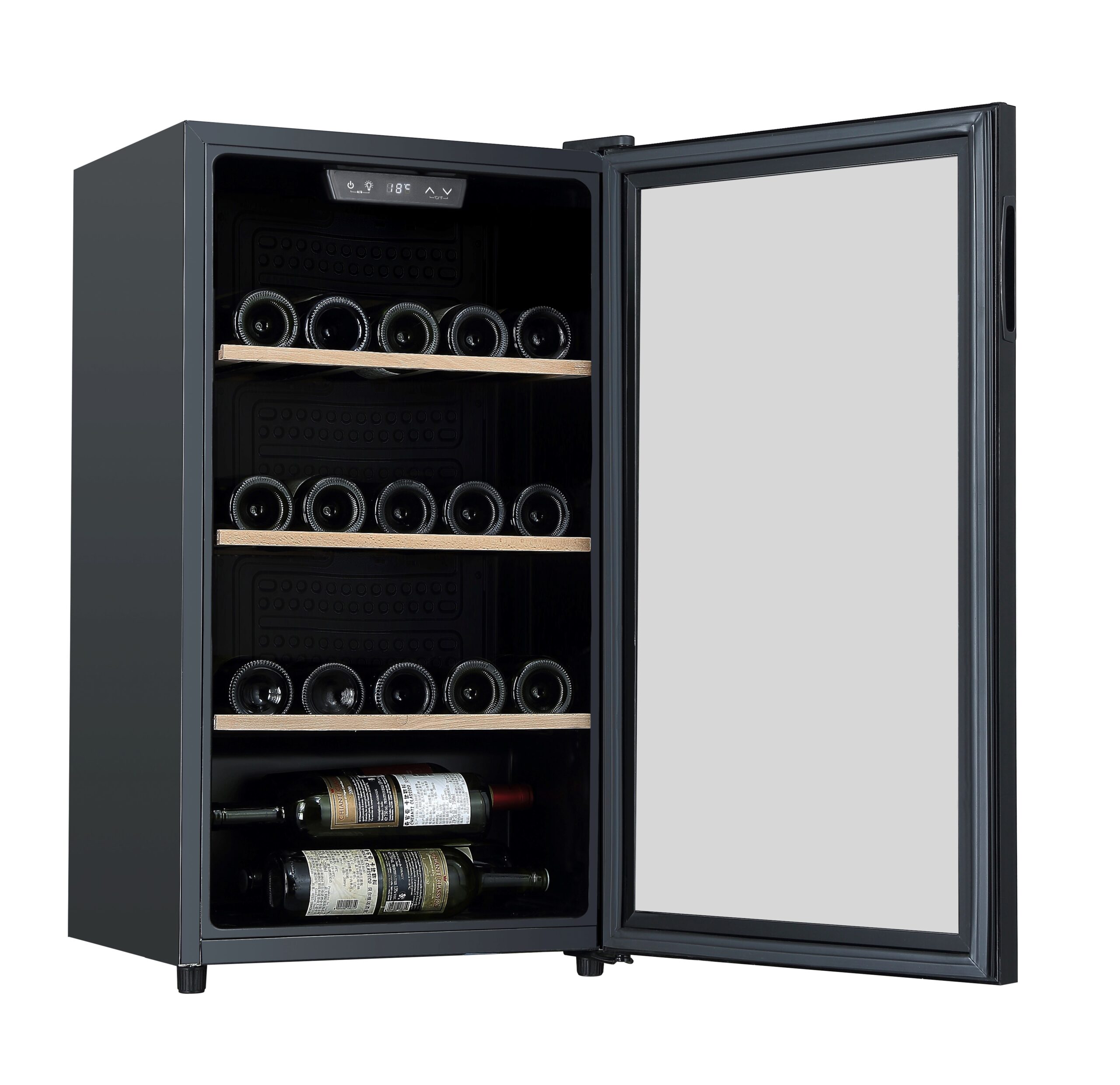 UV-suodatettu tumma lasiovi suojaa viinejä valolta, joka voi heikentää niiden laatua. Tasainen lämpötila varmistaa viinien oikeaoppisen säilytyksen.