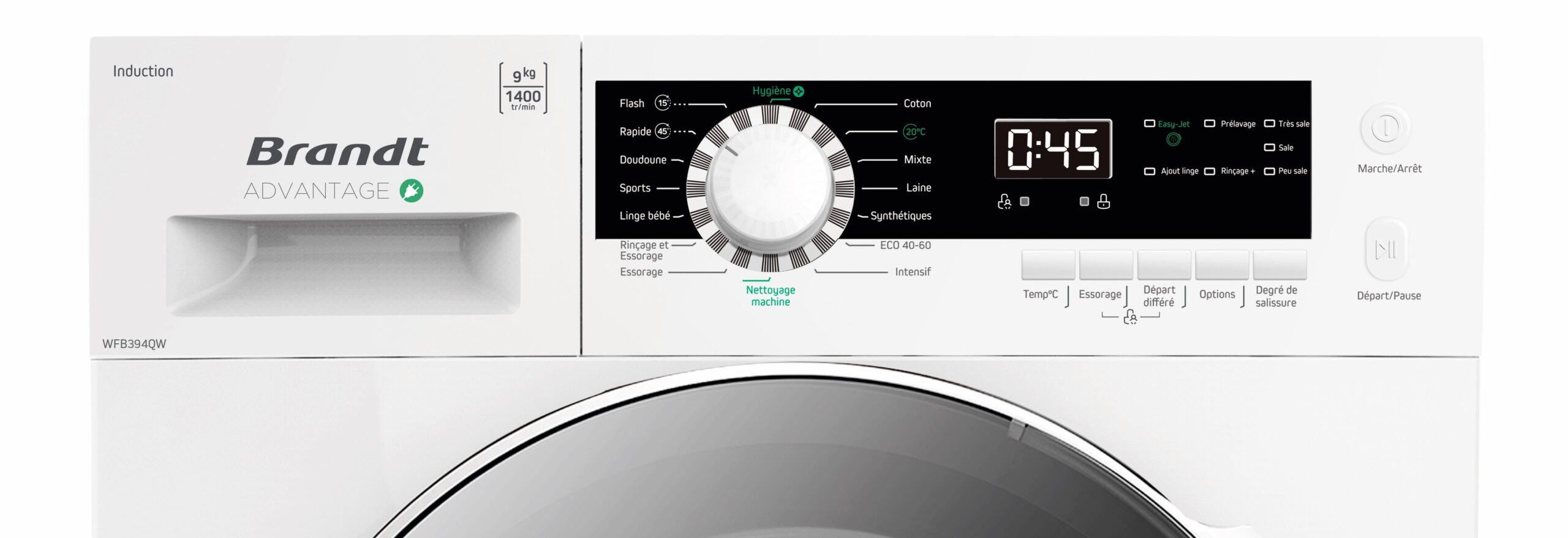 Brandt WFB394QW on energiatehokas ja monipuolinen pyykinpesukone, joka tarjoaa laajan ohjelmavalikoiman, hygieenisen pesutuloksen ja käytännölliset lisätoiminnot. Se sopii erinomaisesti päivittäiseen käyttöön erilaisille tekstiileille.