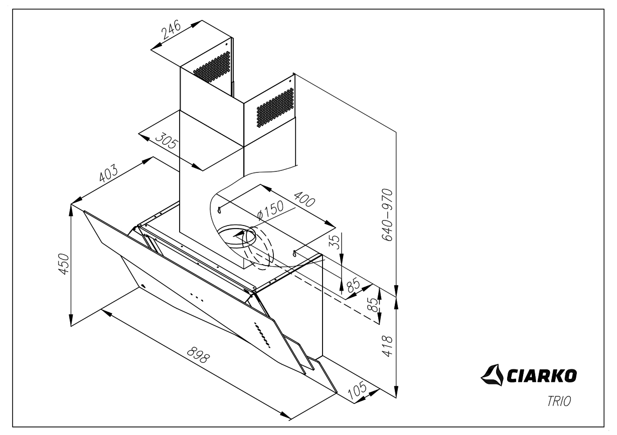 Ciarko Design TRIOB/X on korkeatasoinen liesituuletin, joka yhdistää modernin muotoilun, kosketuksettoman eleohjauksen ja älykkäät ilmanvaihtotoiminnot. Se on erinomainen valinta keittiöön, jossa halutaan yhdistää design, käyttömukavuus ja tehokas ilmanpuhdistus.