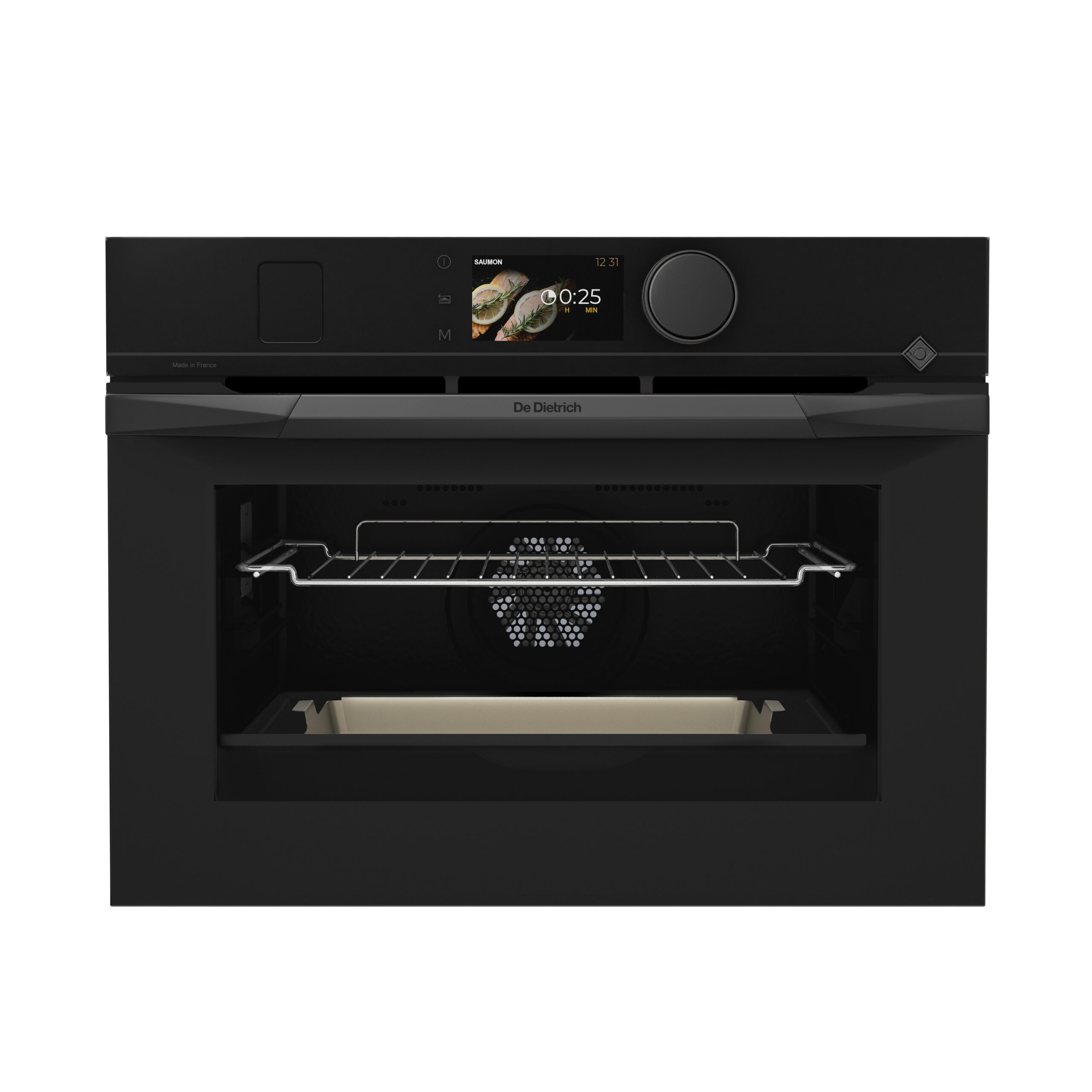 <p>The <strong>De Dietrich Philharmonie</strong> collection exudes French quality, luxurious design, and smart technology.<br>The deep black <strong>Infinite Black</strong> finish adds a touch of timeless elegance to any kitchen.</p><p><strong>Ai Talent Steam </strong>cooking combined with 30-80% or 100% steam. Cooking with steam preserves nutrients, minerals, vitamins and juiciness, resulting in light, healthy dishes. The oven fills with hot steam, creating direct heat transfer, so dishes are cooked faster than usual. When cooking with steam, there is no transfer of odors or flavors, allowing several different dishes to be prepared at the same time. <strong>Water tank 1L</strong>.</p><p><strong>Smart Navigation TFT </strong>4’3 high-definition screen, enriched with innovative features. Sublime photos present the dishes and recipes predefined in automatic cooking, with surprising and unique realism.</p><p><strong>Diamond Selector </strong>as the delicate, tactile and ergonomic navigation selector, of exclusive design, provides an unmatched fluidity of movement for ultimate precision adjustments, thus sublimating excellence.</p><p><strong>Auto Mode </strong>is able to control the oven and program a multitude of dishes. Depending on the recipe selected, the oven will automatically suggest the best way to cook your dish for an excellent result.</p><p><strong>Manual Mode </strong>with direct access offers the best traditional cooking tools to create your own recipe. Because your oven knows your cooking habits better than anyone, it also offers you three options at the beginning and/or end of cooking that you simply activate to perfect your preparations: give a more golden and crispy finish as desired, keep your dish at a tasting temperature without the risk of overcooking, extend the cooking of your preparation by 5 minutes without adjusting the settings.</p><p><strong>Culinary Guide </strong>recipes only requires you to enter the weight of the dish and the oven automatically determines the appropriate cooking mode, the ideal temperature and the cooking time required right down to the minute.</p><p><strong>Pastry and Dessert </strong>recipes contain a suitable recipe for every taste. These recipes are indispensable in the preparation of traditional and modern breads and desserts such as pies, chocolate cake, coco flan, etc. There are 22 different fully automatic recipes to choose from.</p><p><strong>Storable pre-sets </strong>allows direct access to 3 individual programmes that have been previously stored (for frequent or repetitive use).</p><p><strong>Keep Warm </strong>ensures that dishes remain at serving temperature until needed.</p><p><strong>Defrost </strong>allows you to quickly and hygienically bring frozen products to room temperature.</p><p><strong>Drying </strong>allows food to be dried in the oven at a temperature of 35-80 °C while preserving their nutritional qualities.</p><p><strong>Refresh </strong>function restores the optimal moisture level of dried bread products, e.g. to refresh baguettes, loaves, round breads or croissants.</p><p><strong>Pyrolysis </strong>is a highly efficient self-cleaning system, during which the oven heats up to 500 °C, charring the dirt accumulated inside the oven. After the end of the program, when the oven cools down, all you have to do is wipe the ash with a cloth. You can choose between 3 programs of different intensity:</p><ul><li>Pyro ECO energy-saving program with a duration of 1:30 h.</li><li>Pyro 2H is designed for a more thorough cleaning process lasting 2 h.</li></ul><p><strong>Cool door </strong>ensures carefree handling of the oven! The door with 4 reinforced glass layers stays cool even at the highest temperatures, even during pyrolysis cleaning.</p><p>Included with the oven are deep baking tray, grill grate and a special steam dish tray.</p><p>Maximum oven temperature 275 C.</p>