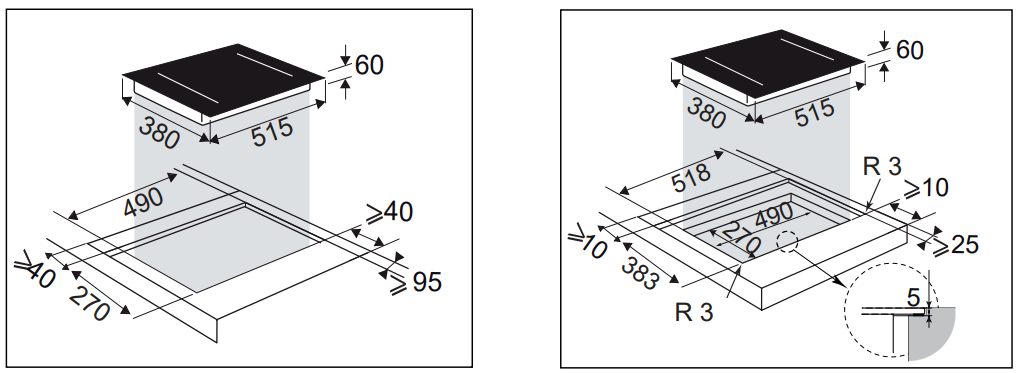 40 × 23 cm yhdistettävä keittoalue