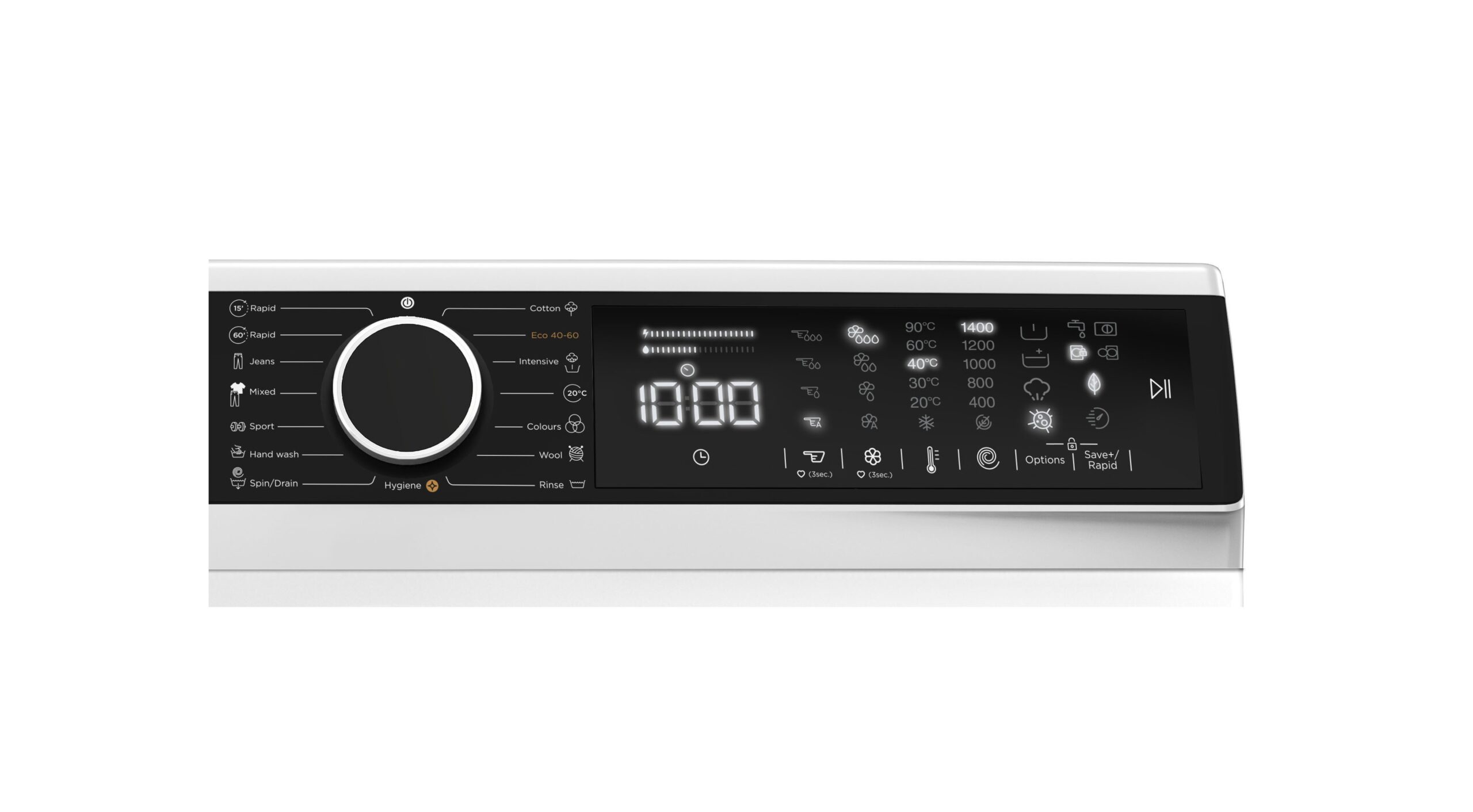 Energia- ja vedenkulutuksen ilmaisin näyttää valitun ohjelman kulutustason, mikä auttaa valitsemaan taloudellisimman vaihtoehdon.