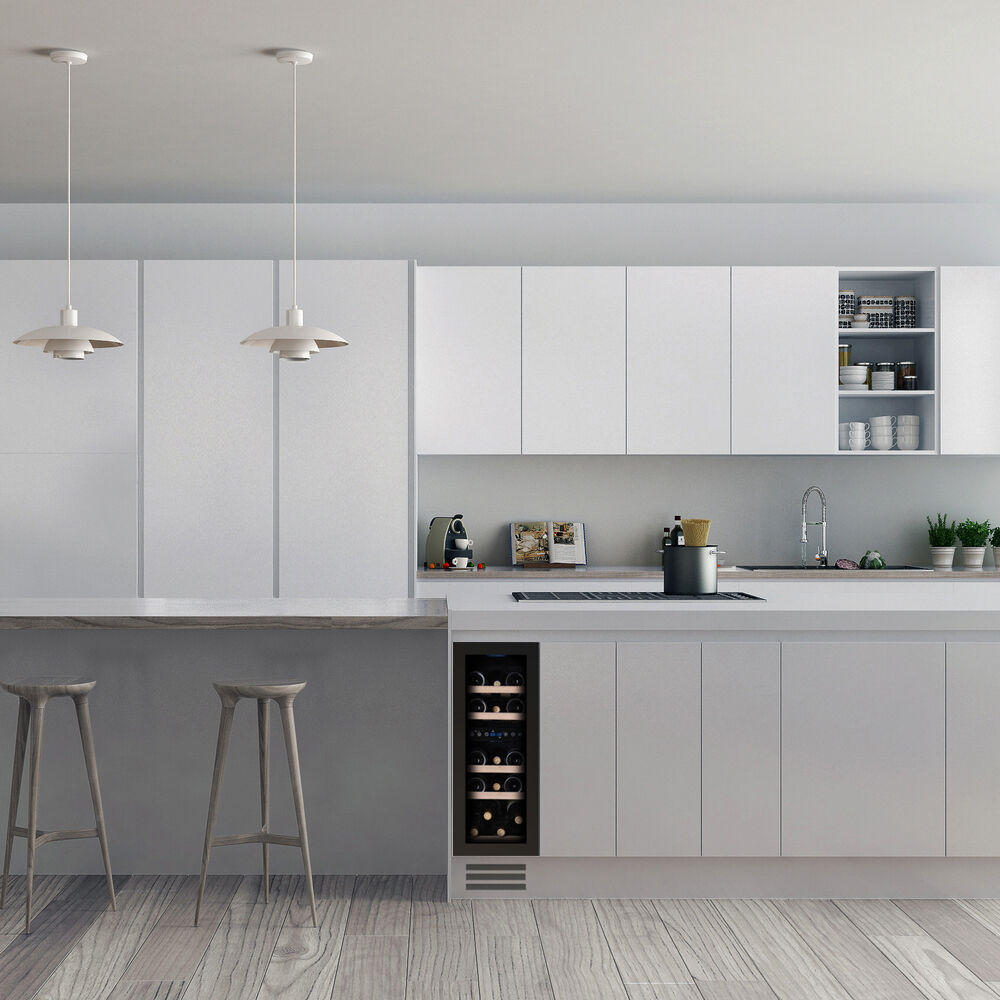 Viinikaapissa on huomaamaton, integroitu kahva manuaaliseen avaamiseen. Selkeä LED-kosketusnäyttö mahdollistaa lämpötilan ja valaistuksen vaivattoman säädön. Valkoinen digitaalinen lämpötilanäyttö tarjoaa hyvän luettavuuden yhdellä silmäyksellä.