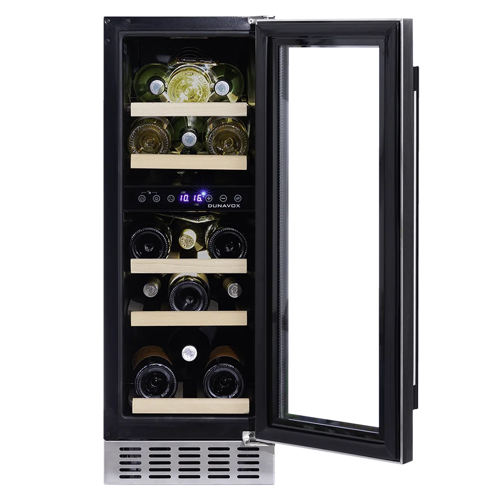 Dunavox DAUF17.58DMB on kompakti ja laadukas viinikaappi, joka tarjoaa täydelliset säilytysolosuhteet ja helppokäyttöiset säädöt viiniharrastajalle.