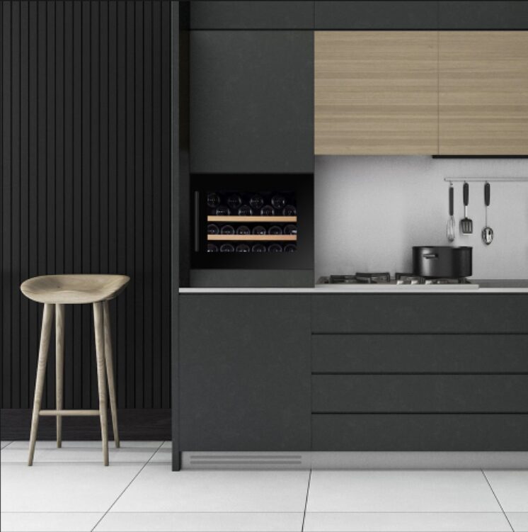 Dunavox DAVS-18.46MB – Integroitava mattamusta viinikaappi moderniin keittiöön