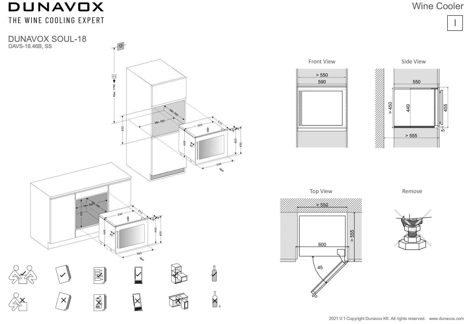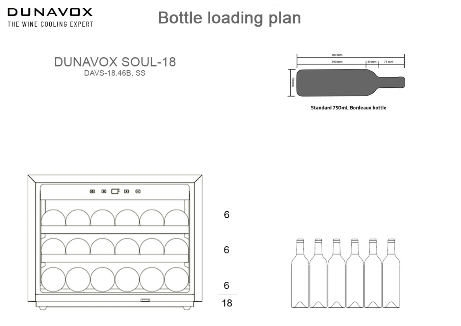 Dunavox DAVS-18.46MB on yksivyöhykkeinen, täysin integroitava viinikaappi, joka on suunniteltu asennettavaksi kalusteisiin tai tason alle. Se ei ole tarkoitettu vapaasti sijoitettavaksi, vaan sulautuu huomaamattomasti osaksi modernia keittiötä tai viinitilaa. Mattamusta viimeistely ja musta kahva tekevät kaapista erityisen tyylikkään ja ajattoman.