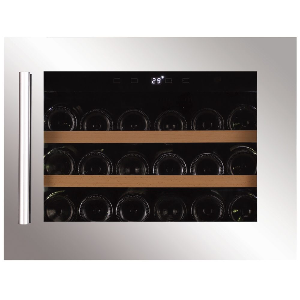 A single zone, 18 bottle integrated model featuring integrated ventilation. Boasting an elegant exterior and a stainless steel door handle, the DUNAVOX Soul-18 is perfect for contemporary kitchen environments. The bottles are displayed on solid beech wood shelves and surrounded by white, orange and blue interior LED lighting. The humidity control system keeps the moisture needed to store wine in the refrigerator for longer. With the supplied plastic container, water can be added if necessary to maintain the correct moisture level in the refrigerator. Vibration free storing. Integrated ventilation system. Fan assisted cooling. Please note that this model is an integrated unit designed to be built in or installed undercounter, and is not intended as a freestanding wine cooler.