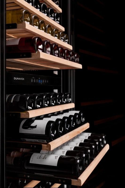 Dunavox DX181.490DBK on Exclusive-sarjan suuri ja tyylikäs viinikaappi, joka tarjoaa kaksivyöhykkeisen säilytyksen jopa 181 pullolle. Se soveltuu erinomaisesti niin kotiin kuin ravintola- ja hotellikäyttöön.