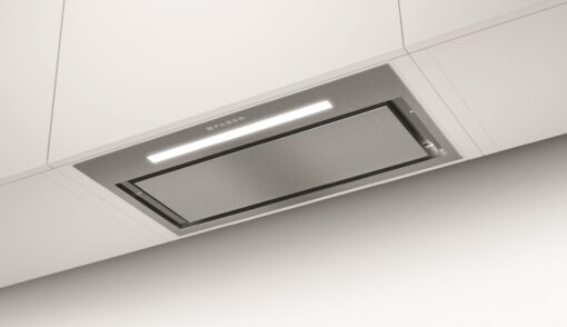 Ruostumattomasta teräksestä valmistettu etuosa tuo keittiöön laadukkaan ja kestävän ilmeen. Slimmi syvyys tekee liesituulettimesta helpon integroida kaapistoon ilman, että sisätilaa tarvitsee uhrata.