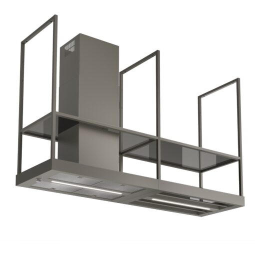 Faber TSHELFTITANIUM on näyttävä ja ikoninen saarekeliesituuletin, jossa yhdistyvät teollishenkinen design ja käytännöllinen hyllyratkaisu. Sen ristikkomainen runkorakenne ja savulasihyllyt tekevät siitä sekä toiminnallisen että sisustuksellisen elementin keittiösaarekkeen yläpuolelle.