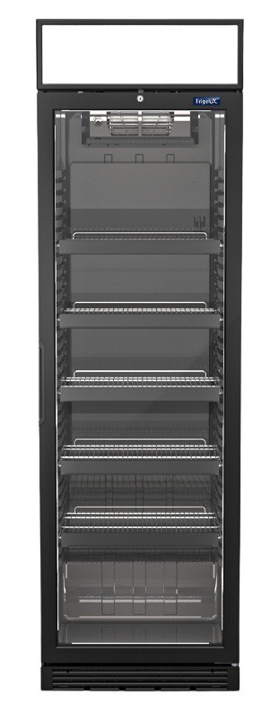 Frigelux D370TOPN on tyylikäs musta kylmäkaappi, joka on suunniteltu erityisesti juomien esillepanoon ja tehokkaaseen kylmäsäilytykseen. Kaapin yläosassa oleva valaistu light box -brändipaneeli tekee siitä erinomaisen valinnan myymälöihin, kioskeihin, kahviloihin ja muihin kaupallisiin ympäristöihin, joissa tuotteiden näkyvyys on tärkeää.