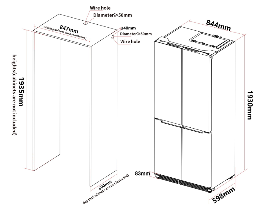 Erityinen saranaratkaisu mahdollistaa oven avaamisen 90 asteen kulmaan ilman, että se osuu viereisiin kalusteisiin. Alhaalta tapahtuva lämmönpoisto tekee laitteesta ihanteellisen integroitavaan asennukseen. Säädettävät jalat ja pyörät helpottavat laitteen sijoittamista ja siirtämistä.