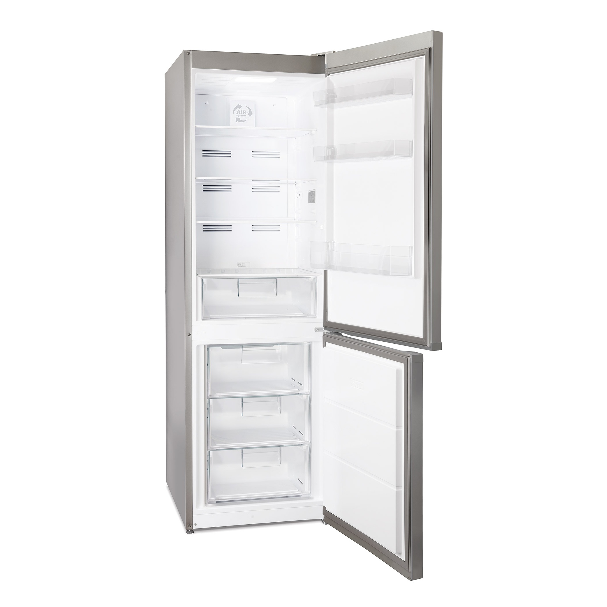 Vapaasti sijoitettava 60 cm leveä jääkaappipakastin, teräs.
