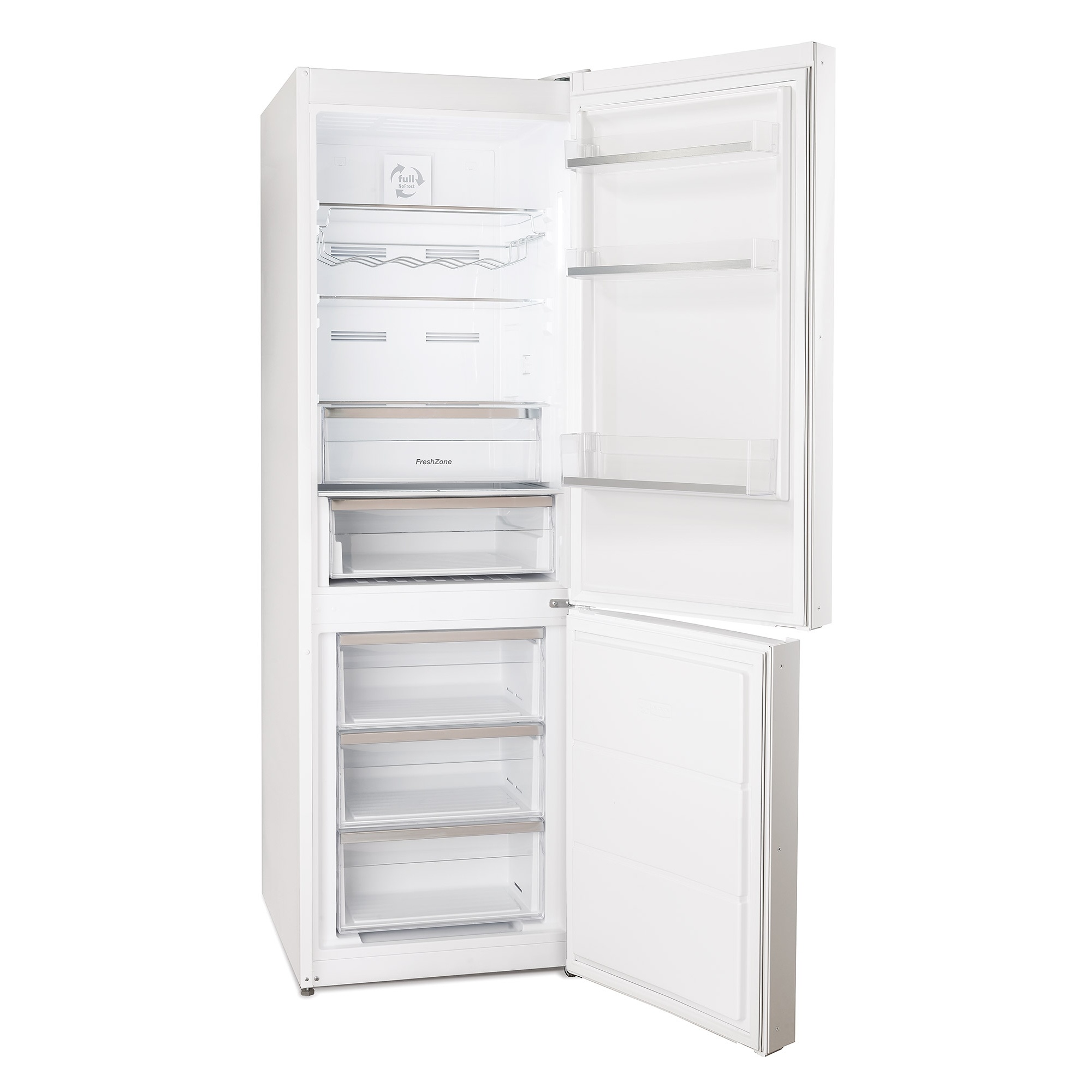 Klassinen ja tyylipuhdas valkoinen jääkaappi-pakastin, A++.