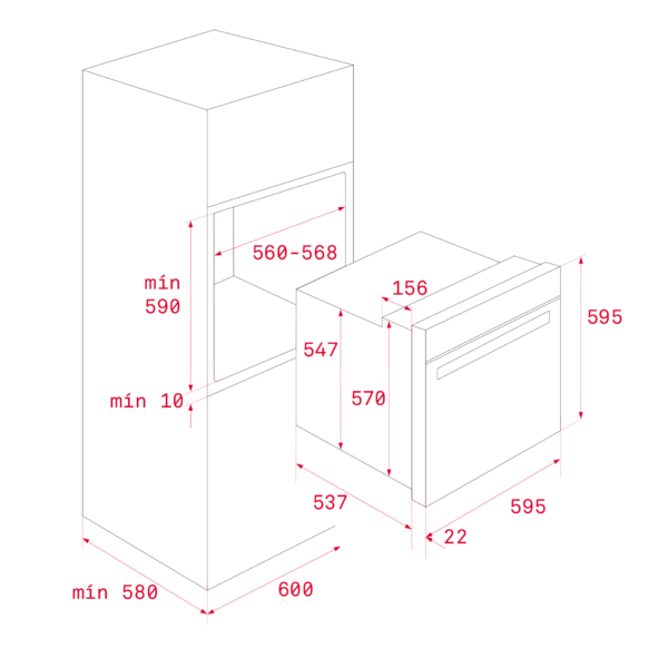 Ulkomitat (K × L × S): 595 × 595 × 537 mm