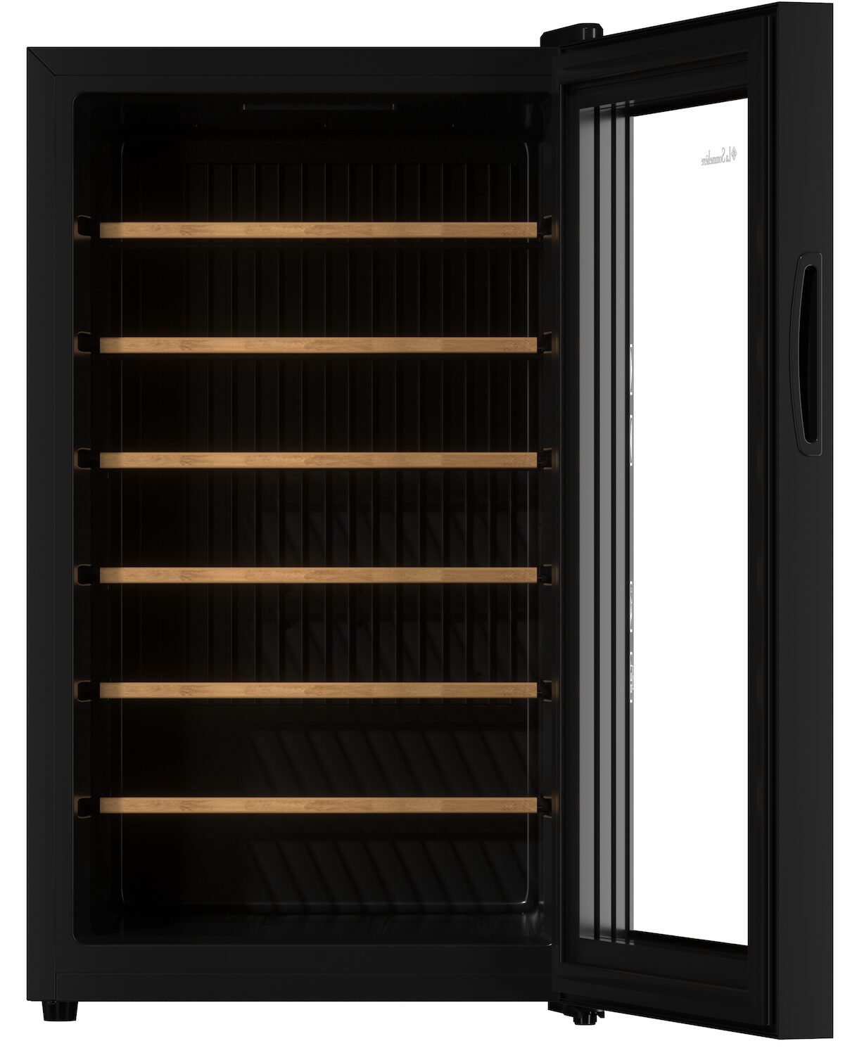 Täyslasinen ovi, huomaamaton integroitu kahva ja ulkopuolinen digitaalinen ohjauspaneeli mahdollistavat nopean ja helpon käytön. Valkoinen LED-sisävalaistus on varustettu erillisellä kytkimellä ja tuo pullot esiin tyylikkäästi.
