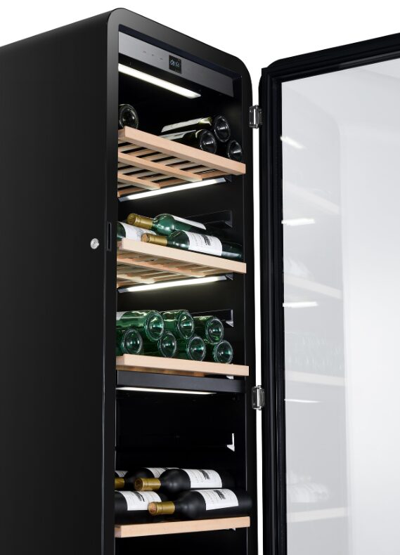 APOGEE190DZN erottuu edukseen muotoilullaan. Pyöristetty design yhdistää vintage-henkisen retroilmeen moderniin estetiikkaan ja tekee viinikaapista näyttävän sisustuselementin. Se ei ole vain säilytyskaappi, vaan osa kodin visuaalista kokonaisuutta.