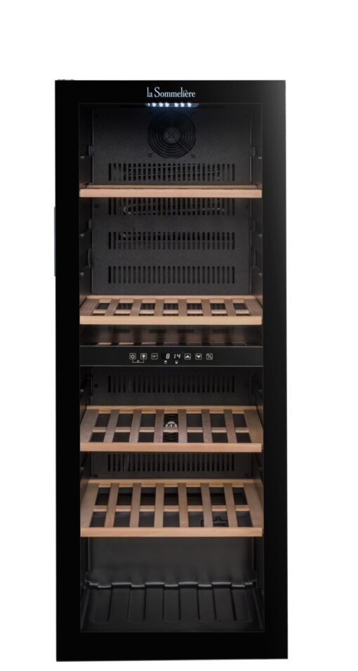 La Sommeliere SLS90DZ on tilava ja tyylikäs kaksialueinen viinikaappi, joka tarjoaa hallitut säilytys- ja tarjoiluolosuhteet jopa 91 viinipullolle. Vinotag®-tuki, tärinätön rakenne ja moderni musta muotoilu tekevät siitä varman valinnan viinikokoelman hallintaan La Sommeliere-brändiltä.