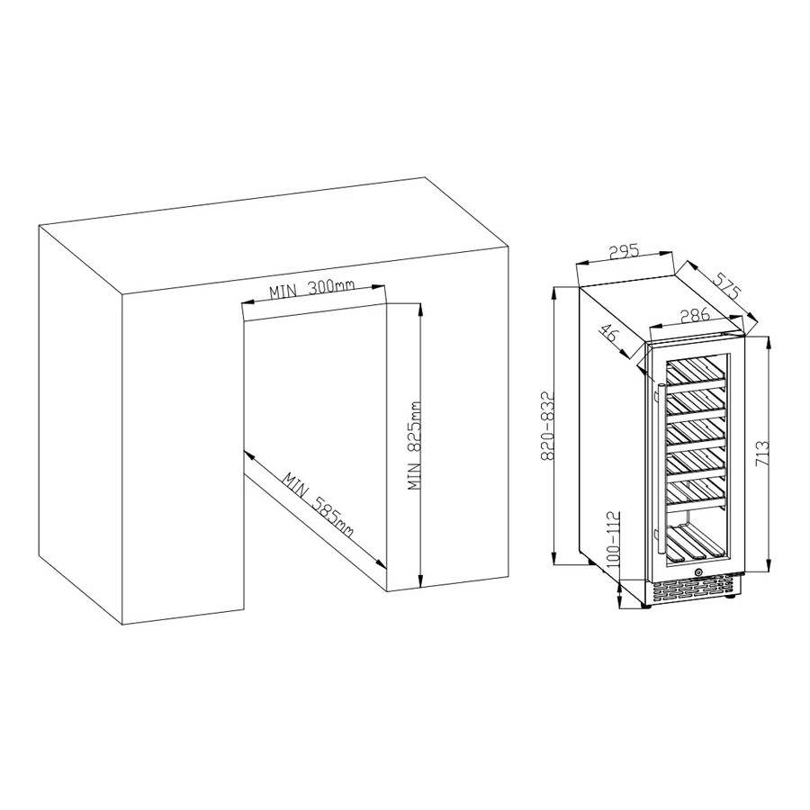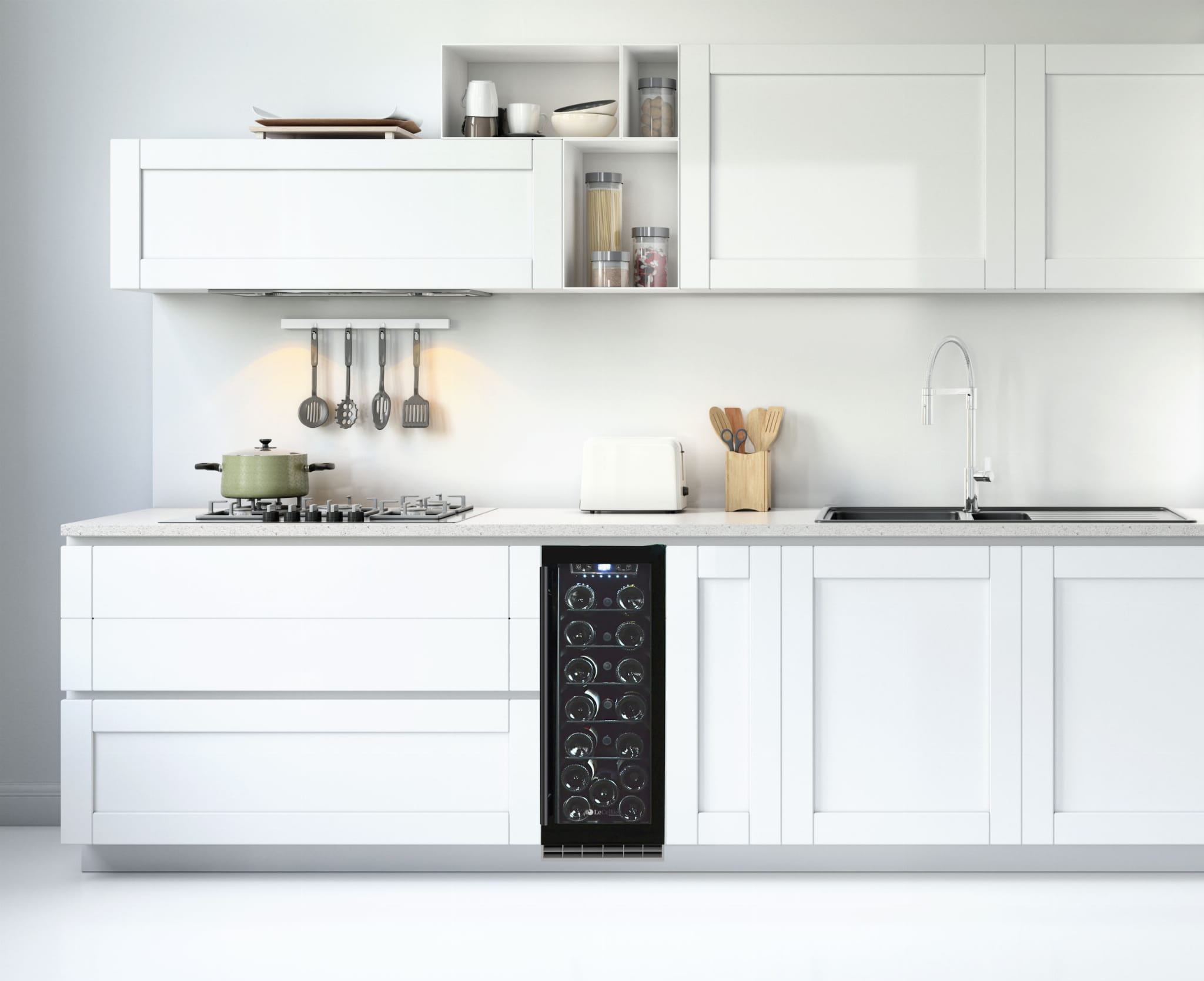 Viinikaappi soveltuu sekä täysin integroitavaksi kalusteisiin että asennettavaksi työtason alle. Tämä mahdollistaa helpon sovittamisen erilaisiin keittiöratkaisuihin ja tiloihin.