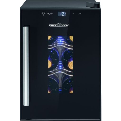 ProfiCook PCWK1230 on kompakti ja erittäin hiljainen viinikaappi pienimuotoiseen viinien säilytykseen. Se on suunniteltu käyttäjälle, joka haluaa säilyttää muutaman pullon viiniä oikeassa lämpötilassa ilman kompressorin aiheuttamaa tärinää ja melua. Tyylikäs musta viimeistely, UV-suojattu lasiovi ja sininen LED-valaistus tekevät kaapista sekä käytännöllisen että visuaalisesti miellyttävän ratkaisun kotiin.
