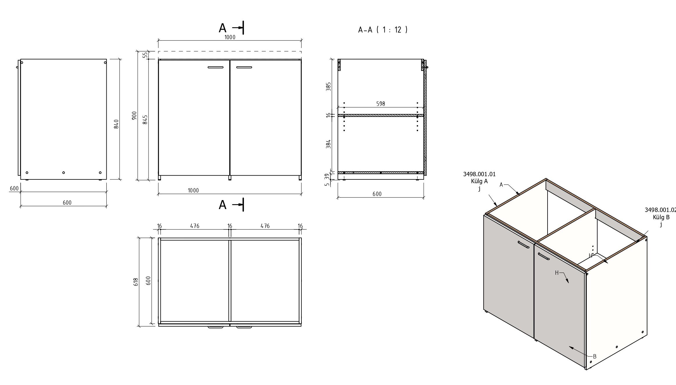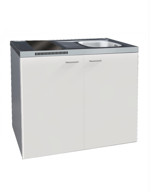 Minikeittiön mitat ovat 1000 × 600 × 845 mm. Keittotason ja altaan mitat ovat 1000 × 600 × 55 mm, mikä tarjoaa toimivan työskentelyalueen kompaktissa koossa.