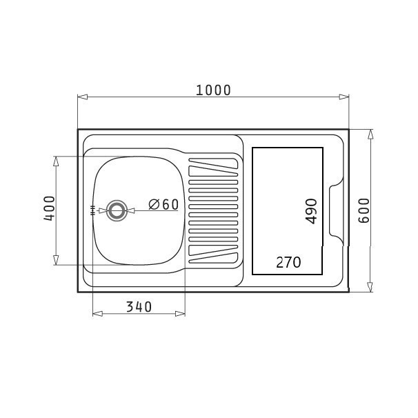 Ruostumattomasta teräksestä valmistettu allas ja työtaso muodostavat kestävän ja helppohoitoisen työskentelyalueen. Allaskulhon mitat ovat 340 × 400 × 150 mm, ja toimitukseen sisältyy sifonisarja.