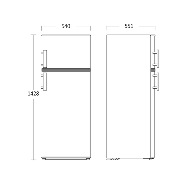 1428 x 540 x 551 mm (KxLxS)