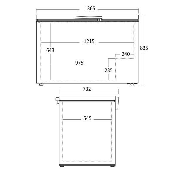 Neljä pyörää tekevät pakastimesta helposti siirrettävän. Etupuolella oleva tyhjennystulppa mahdollistaa sulatus- ja pesuvesien vaivattoman poistamisen. Mukana toimitetaan kaksi irrotettavaa lankakoria elintarvikkeiden järjestämiseen, ja lisäkoreja on saatavilla lisävarusteena.