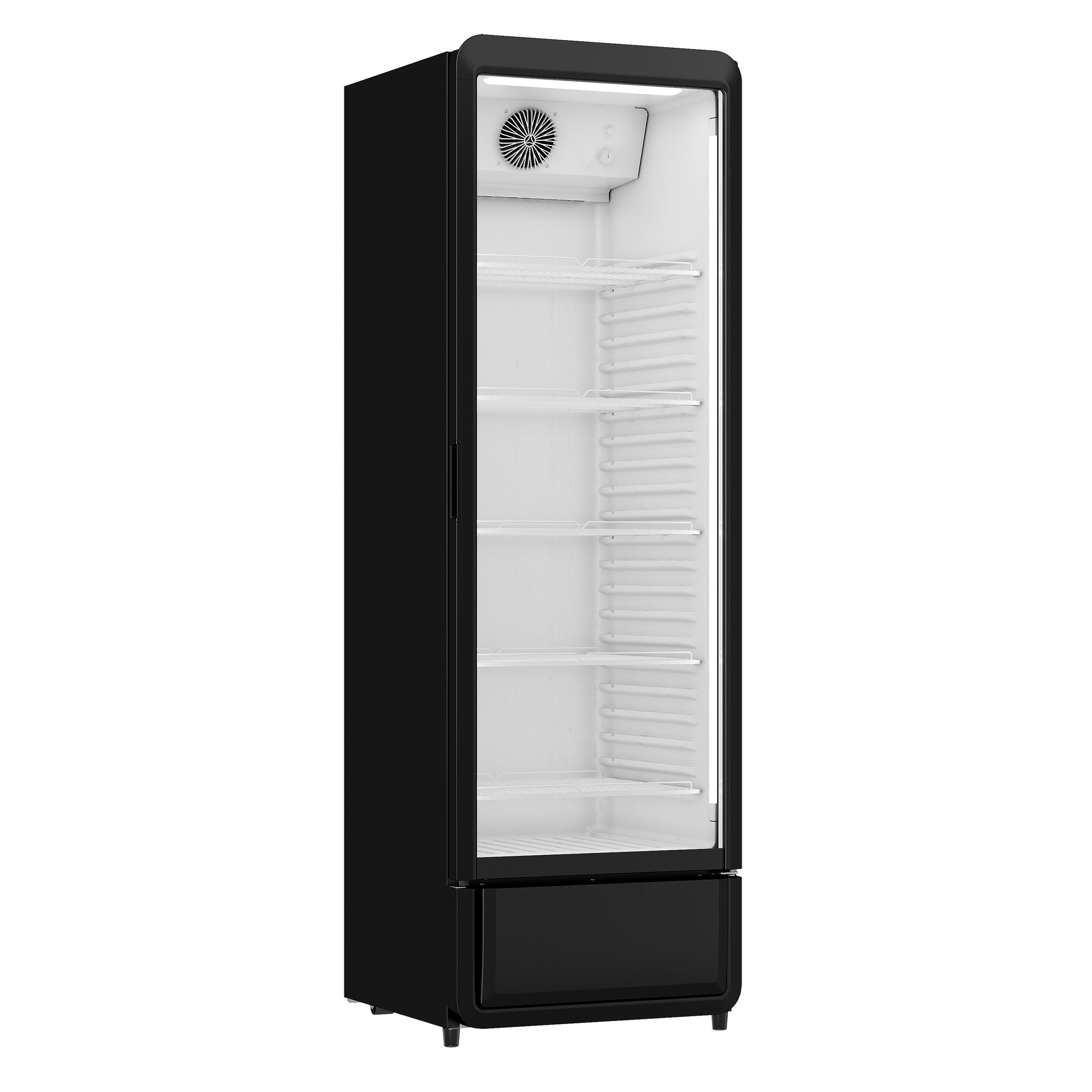 Kaapissa on suuri lasiovi, joka tarjoaa erinomaisen näkyvyyden sisällölle ja tekee juomien esillepanosta houkuttelevan. LED-sisävalaistus tehostaa näkyvyyttä ja sopii erityisen hyvin asiakas- ja myyntitiloihin. Musta ja moderni ulkokuori lisää kaapin ammattimaista ilmettä. Pyörät ja säädettävät jalat helpottavat siirtämistä ja sijoittelua.