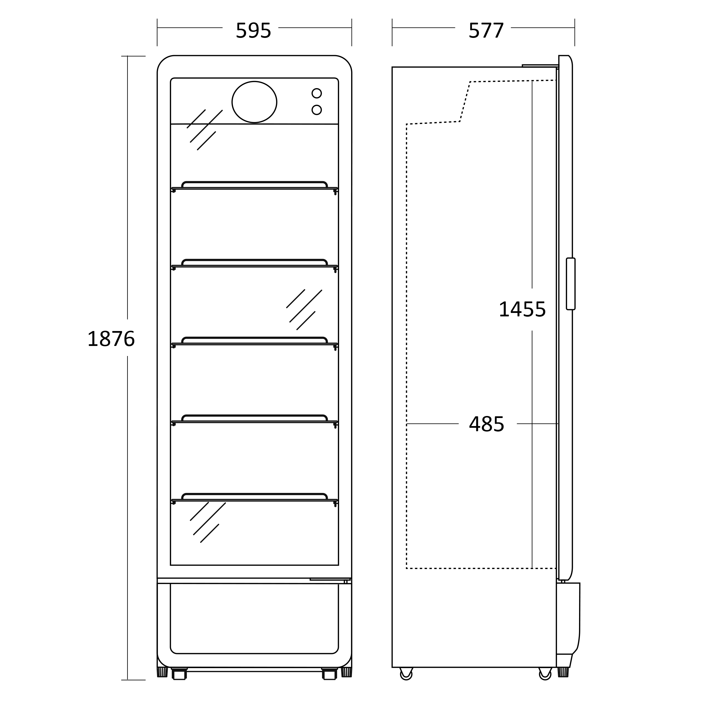 Sisätilasta löytyy 5 säädettävää metallihyllyä, jotka mahdollistavat erikokoisten pullojen ja tölkkien järjestämisen joustavasti. Viilennys jakautuu tasaisesti koko sisätilaan, mikä varmistaa juomien pysymisen oikeassa tarjoilulämpötilassa. Suuri sisäkapasiteetti sopii tiloihin, joissa juomia täydennetään ja myydään nopeasti ja runsaasti.
