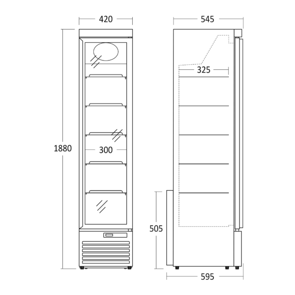 Ulkomitat (L × S × K): 420 × 595 × 1880 mm