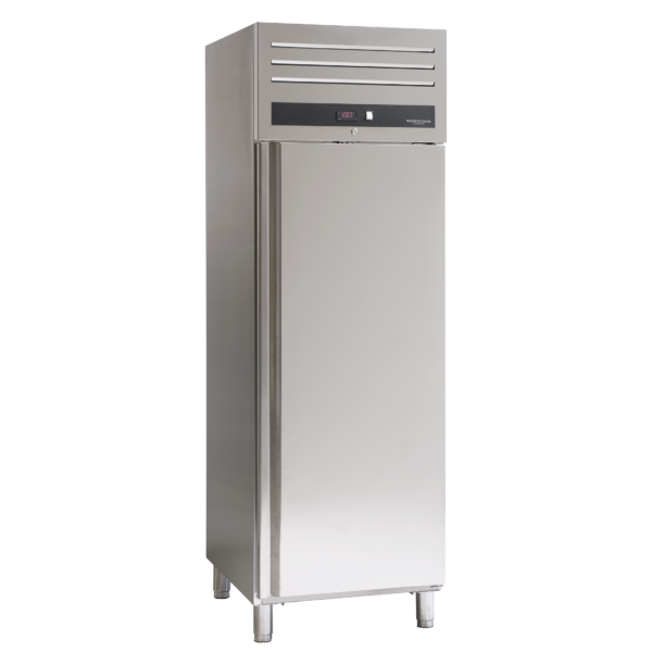 Pakastekaapin runko ja ovi on valmistettu ruostumattomasta teräksestä, joka on hygieeninen, helppo puhdistaa ja erittäin kestävä. Ovi sulkeutuu tiiviisti ja sen kätisyys on vaihdettavissa, mikä helpottaa sijoittelua eri tiloihin. Ammattikeittiöihin sopiva viimeistely kestää kovaa päivittäistä käyttöä.