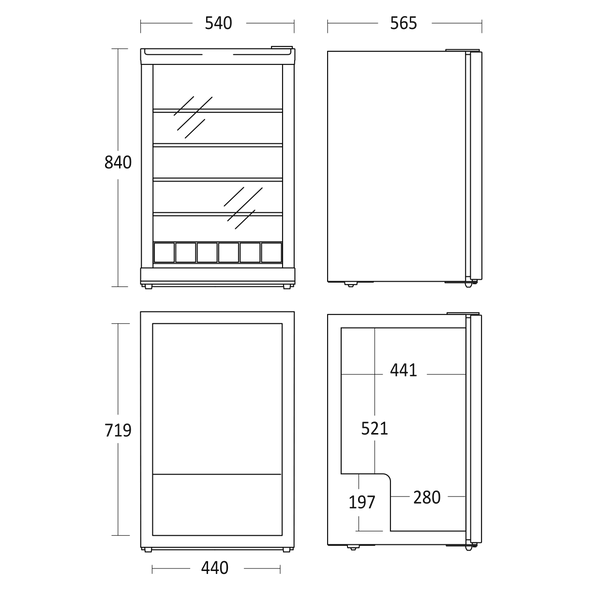 115 litran kylmätila mahdollistaa juomien, välipalojen ja elintarvikkeiden säilyttämisen. Neljä säädettävää metallihyllyä antavat joustavuutta erikokoisille pulloille ja tölkeille. Alareunan irrotettava lankatuki estää tuotteita vierimästä ulos. Musta sisätila ja LED-valaistus viimeistelevät kokonaisuuden ja parantavat näkyvyyttä.